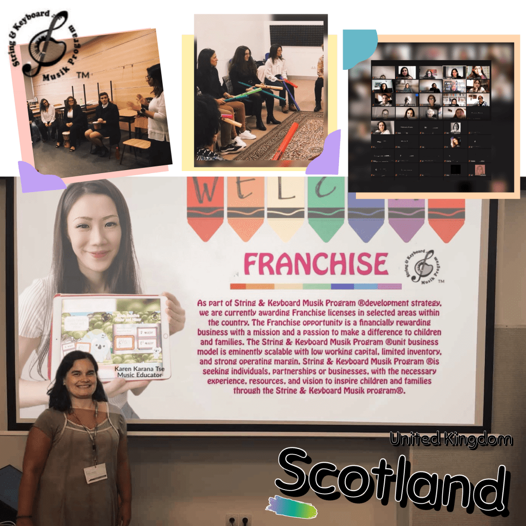 •BRAND & LEADERSHIPS BENEFITS: The highest quality and most comprehensive line of early childhood curriculum materials, instruments, and music that parents rave about Scholarships available for children with special needs or children of low-income families Website, Marketing support: Your studio is featured on Master Franchisor’s website Branded, professional, and high-quality marketing tools. The benefits of connecting to a world-renowned brand are National and international media campaigns. The Franchise License already has more than 20+ Music workshops that joined us.