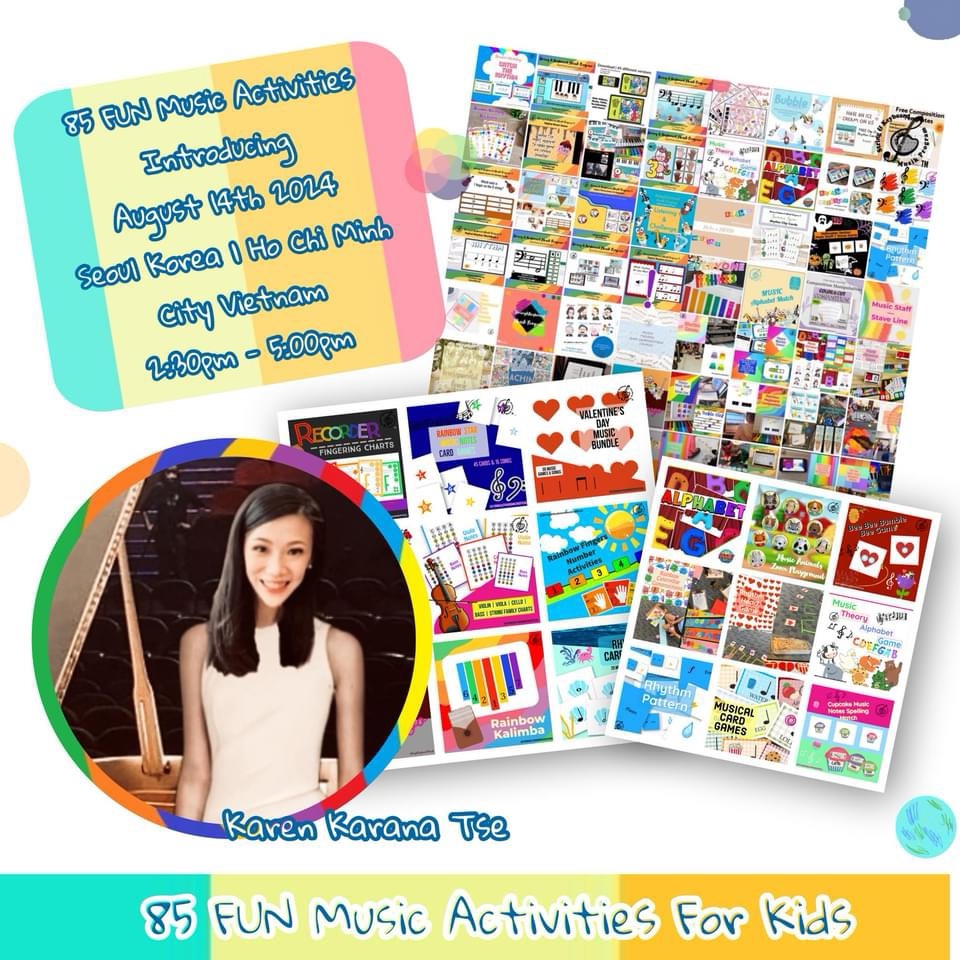 WorldwideMusicTeachers 「85 FUN Music Activities Introducing 2024」 in Seoul, Korea & Ho Chi Minh City, Vietnam. It was great to see you all in our online workshop. Thank you for your enthusiastic participation! We couldn’t have had such a fantastic time without you all.
