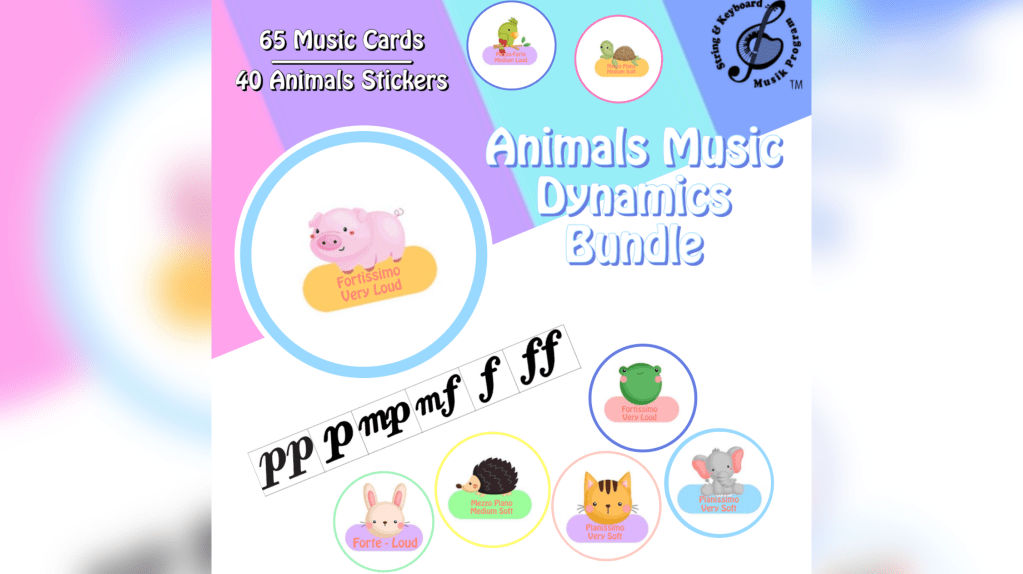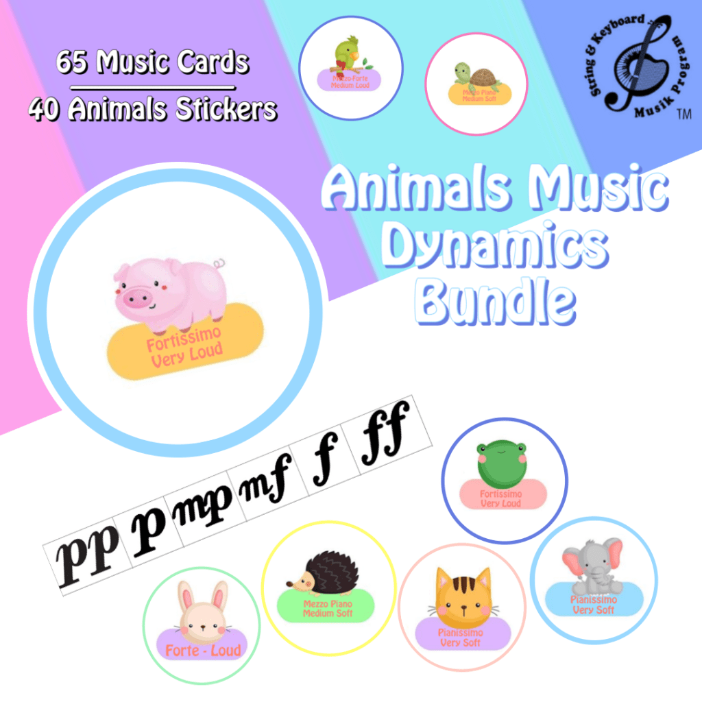 This fun, Animals Music Dynamics Bundle is a great way for music students to show what they know about dynamics! The included dynamics are: pp-p-mp-mf-f-ff and words included are the same: pianissimo, piano, mezzo piano, mezzo forte, forte, fortissimo Terms of Use: This Bundle is for individual use. All bundles is violation of copyright.