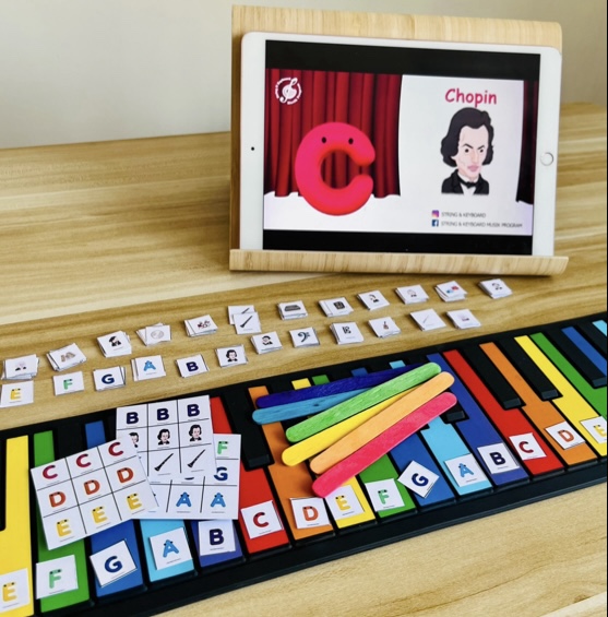 String & Keyboard Musik Program ® is a registered inclusive learning program created with this in mind. Bespoke colour-coded musical Instruments, Workbooks, Instructional Videos, and Apps are all designed for aspiring young musicians aged 2 and up. Music resources for Middle Schools and music teaching tools for pre-kindergarten and Elementary School music classes approved by educational institutions are also available.