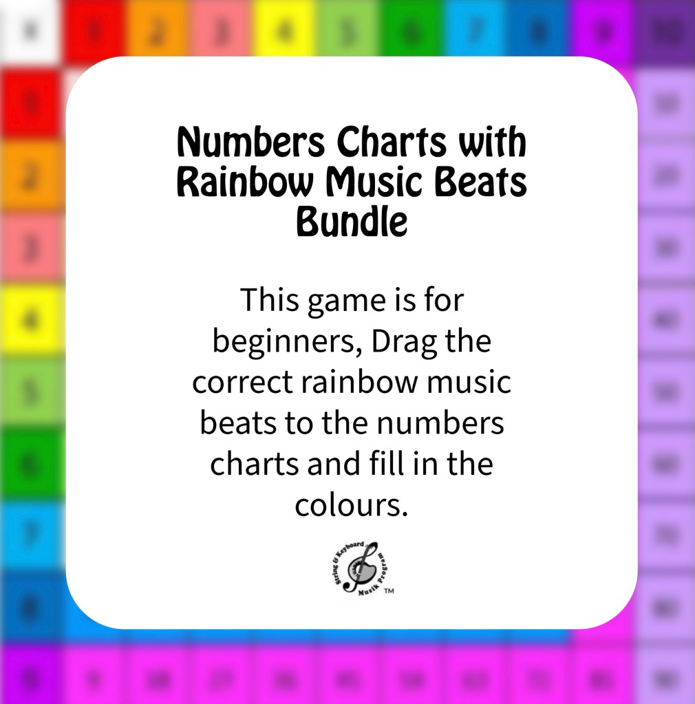 This game is for beginners, Drag the correct rainbow music beats to the numbers charts and fill in the colours.