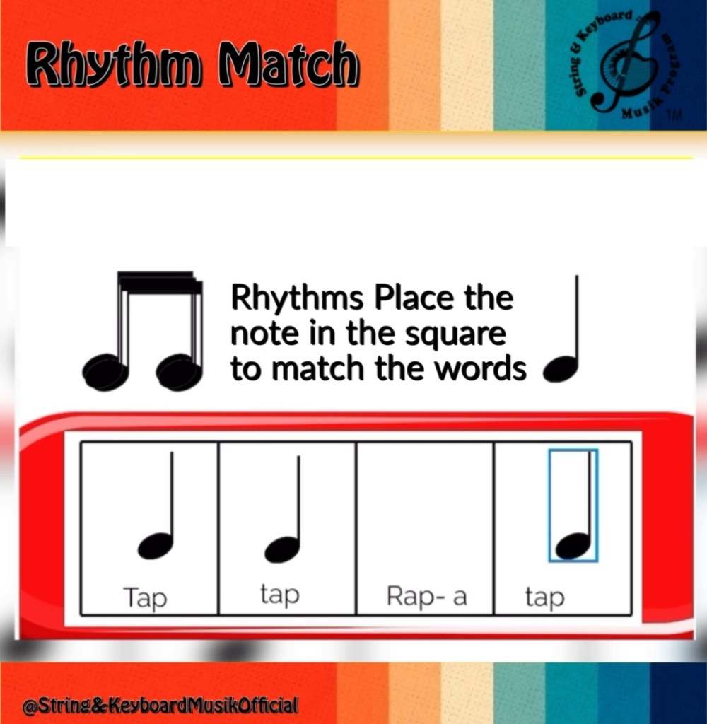 Rhythm Game – try the Rhythms and Place the note in the square to match the words. 64 Cards and 16 song.