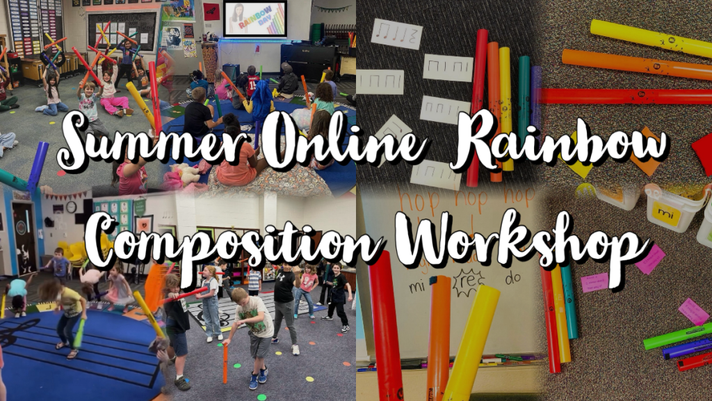 Summer Online Rainbow Composition Workshop from June 13th to August 15th, 2024. Every Monday & Thursday GMT 2:30-4:00 pm. Rainbow Composition is are great tool for melodic composition for elementary students. From groups to play their compositions or project them for the entire class to play! Students can use the color coding of the notes to add pitch to rhythms. “DETAIL Please ask your school music teachers for further information”.
